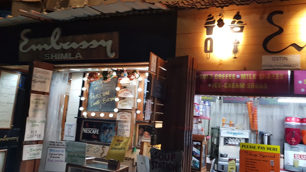 It was around 9 pm so called it a day,time to return back to hotel,it was a straight walk via mall road.On the way my feet stopped,why?Because I found Emabssy .Embassy is oldest icecream parlour in Shimla,it also has a restaurant but now I was craving for some cool desert.Asked the vendor which is most chocolatey sundae he have,he suggested Choco Brownie sundae so ordered that,was really good with lots of chocolate. brownie topped with chocolate ice cream scoops,chocolate sauce,choco chips and choco stick,yummy.It was of rs 130.It was the best thing I ate today.Good way to end a day,now without any stop to hotel.This was end of the day,an introduction to Shimla.