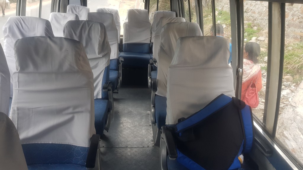 The bus was a small 15 seater,condition of the bus was not great neither it was much clean,seats were at least comfortable,was having 2X1 configuration so i took a single seat.There were no guide,only driver through out the tour.