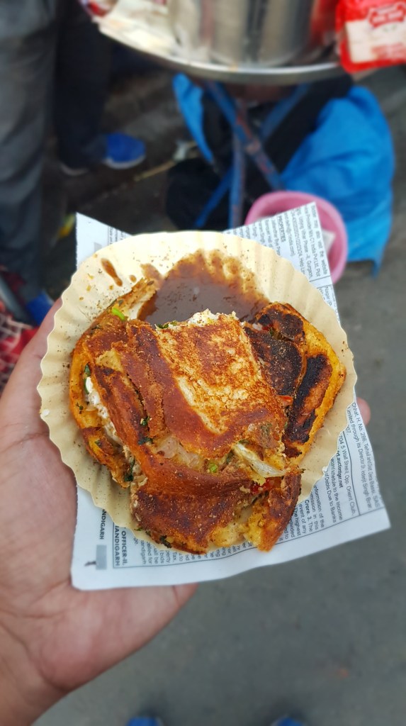 It was 6 now so time to have some light snacks and later proceed to bus stand to board the bus.At the point where lower bazar starts from Mall road saw a man selling sandwiches,there were many locals standing and waiting for their sandwich so certainly worth trying,I ordered a masala cheese one ,it was amazing.It was strange that he was not featured in any of the so called Shimla food guide,he is not a new vendors,he told that he was selling there for years and all local recognise him as “Sandwich wala” and we can find he daily at the same place.
