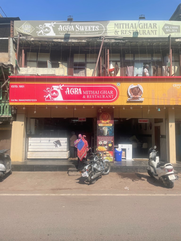Time to explore the old city and its vegetarian food. First location was Agra Misthan Ghar near Gulnaz Hauz. Misthan Ghar is one of the oldest sweet shops in the area and considered to serve best lassi in the area so I also went with flow and ordered their kesar Pista Lassi. The lassi came loaded with the goodness of pista and was thick enough to eat with a spoon, totally worth and excellent start of Old city tour.