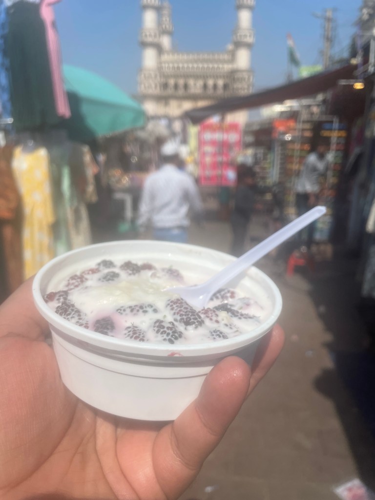 Next was Milan juice Centre, just opposite side of the road. We simply can’t leave Old City without devouring the Mulberry (Sahtut) cream at Milan. Mixed with honey and cream, this is your happy ending to eating out at Charminar but for me it’s not the end. Their signature Mulberry cream turned out awesome, another recommended place and item in Old City.