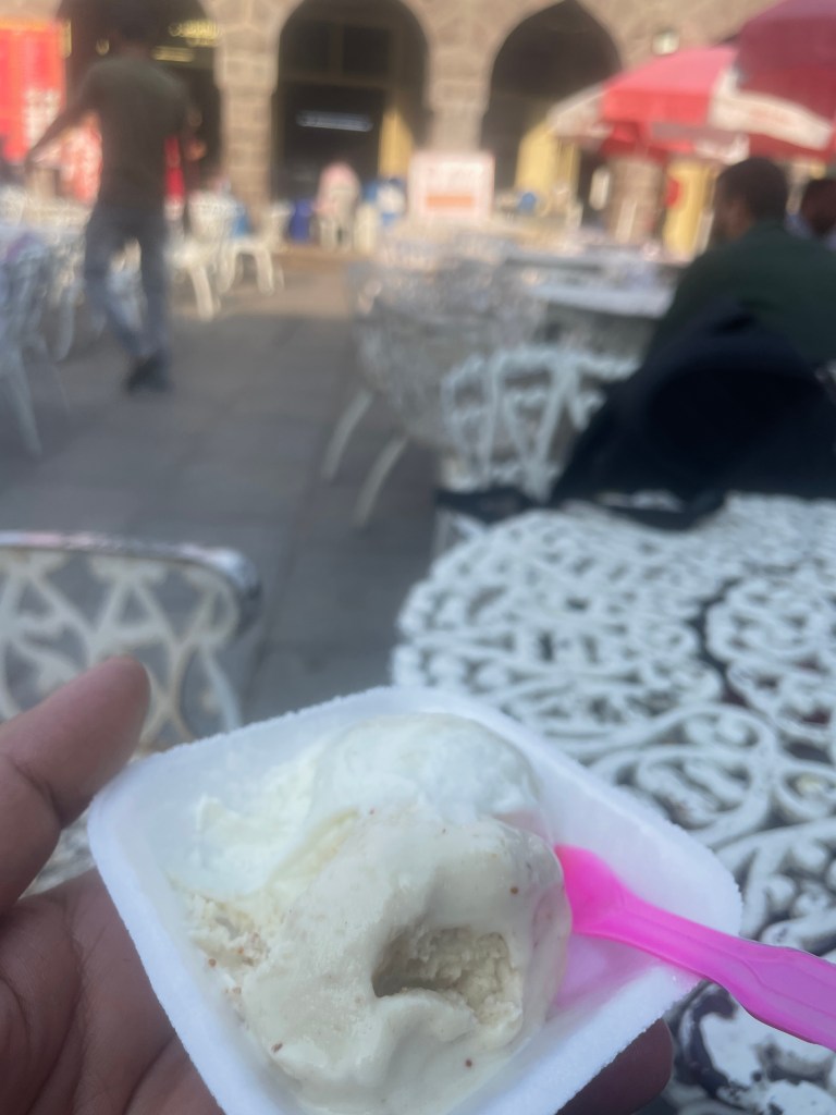 Now it was too much of sweets for a day and time to windup the food tour, had few more places in mind like Govind Ki Bandi for Tawa Idli , Shubhan bakery and café Nilofar for Irani chai and biscuits but now neither have time nor mood to have more sweets. Just when about to book cab saw Mozazahi market opposite side of the road, it has two legendary ice cream parlour, Bilal and Famous, after coming too close to them returning without visiting doesn’t looks appropriate behaviour for a foodie so decided to visit at least one of them, this time famous ,will try Bilal next time. Heard their seasonal ice cream are their USP so ordered scoop of Sitafal, was good but not so special.