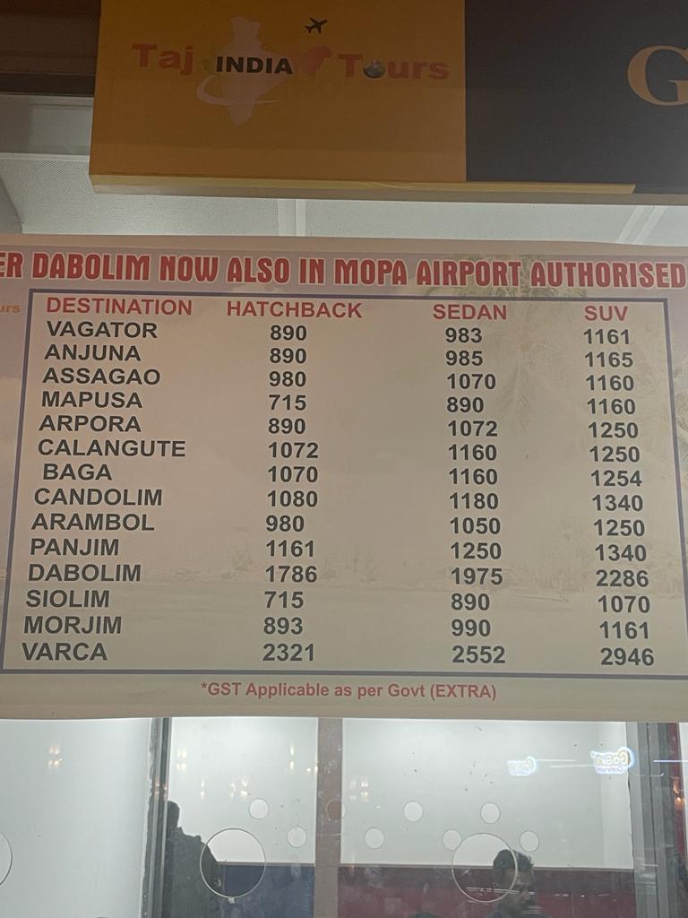 Manohar International Airport (MOPA/GOX) airport have facility of prepaid taxi option .Booking counter is situated just outside the arrivals (its accessible from inside too) .There are booking counter of various government approved vendors . Sharing price displayed at the counter .